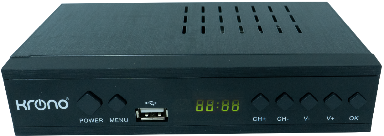 La pantalla frontal muestra el canal y la hora en tiempo real, facilitando el control del equipo sin necesidad de encender el televisor