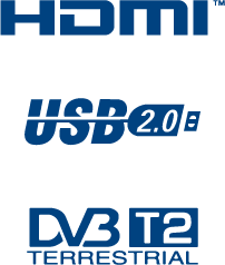 Equipado con 2 puertos HDMI, 2 entradas USB, AV RCA, salida para audífonos, entrada RF